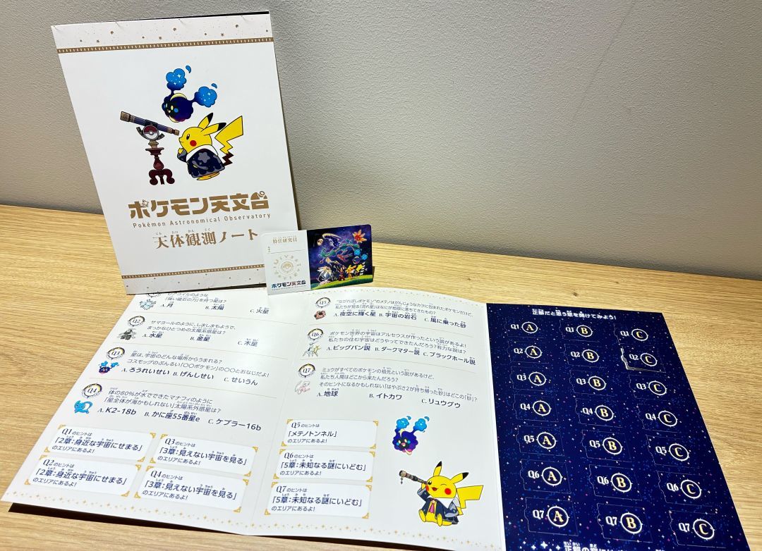 ただ展示を眺めるだけでなく、能動的に学んでもらうにはどうすればよいか。そこで今回は、来場者全員にクイズシートを配布しました。クイズに全問正解すると、ポケモン天文台の研究員として認定する「特任研究員認定証」がもらえる仕組みも用意しています。